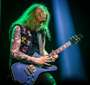 Para concretizar a noite como uma verdadeira ode ao mais puro heavy metal, às 21:50 a lendária Grave Digger subiu ao palco para um show que celebra seus 45 anos de história. “Twilight of the Gods” ficou a cargo de abrir o show seguida de “The Grave Dancer” e esse início já demonstrou o quão afiado o público curitibano estava para cantar em uníssono os sucessos da banda. Na sequência veio “Kingdom of Skulls”, uma representante do mais novo álbum da banda, Bone Collector, lançado ainda este ano e prova de que a banda celebra sua história, mas segue aumentando sua discografia e produzindo bons materiais. Passeando por diferentes fases da carreira da banda vimos “Under My Flag”, “Valhalla”, “The Keeper of the Holy Grail” e “The Dark of the Sun”, estas últimas cantadas à plenos pulmões pelos fãs apaixonados. Do álbum Knights of the Cross, apontado por Chris Boltendahl como seu favorito, tivemos “The Curse of Jacques”. “Shadows of a Moonless Night” veio a seguir, preparando o terreno para um dos pontos altos da noite: a dobradinha “The Round Table (Forever)” e “Excalibur”, ambas cantadas em coro pelo público, especialmente em seus refrãos. O show continuou com “The Devils Serenade” e “Back to the Roots” que mantiveram a energia altíssima, seguidas por “Rebellion (The Clans Are Marching)” cujo ao vivo ficou por conta de uma plateia dedicada. Se o show já tinha promovido até ali momentos eletrizantes, no encore a banda arrematou isso com uma sequência quase catártica: “Scotland United”, “Circle of Witches”, “Witch Hunter” e “Heavy Metal Breakdown”. Ao final do show acho que duas coisas eram unanimidade: o setlist foi um verdadeiro presente aos fãs da banda e o Grave Digger ainda tem muita história pra escrever. O único ponto do show que achei que poderia ter sido melhor foi o volume do microfone de Chris, mas isso não chegou a ser realmente um problema. No mais, a banda inteira estava muito bem ao vivo e meus destaques ficam para o cativante vocalista e o novo guitarrista, Tobias Kersting, que foi uma aquisição mais que acertada da banda.