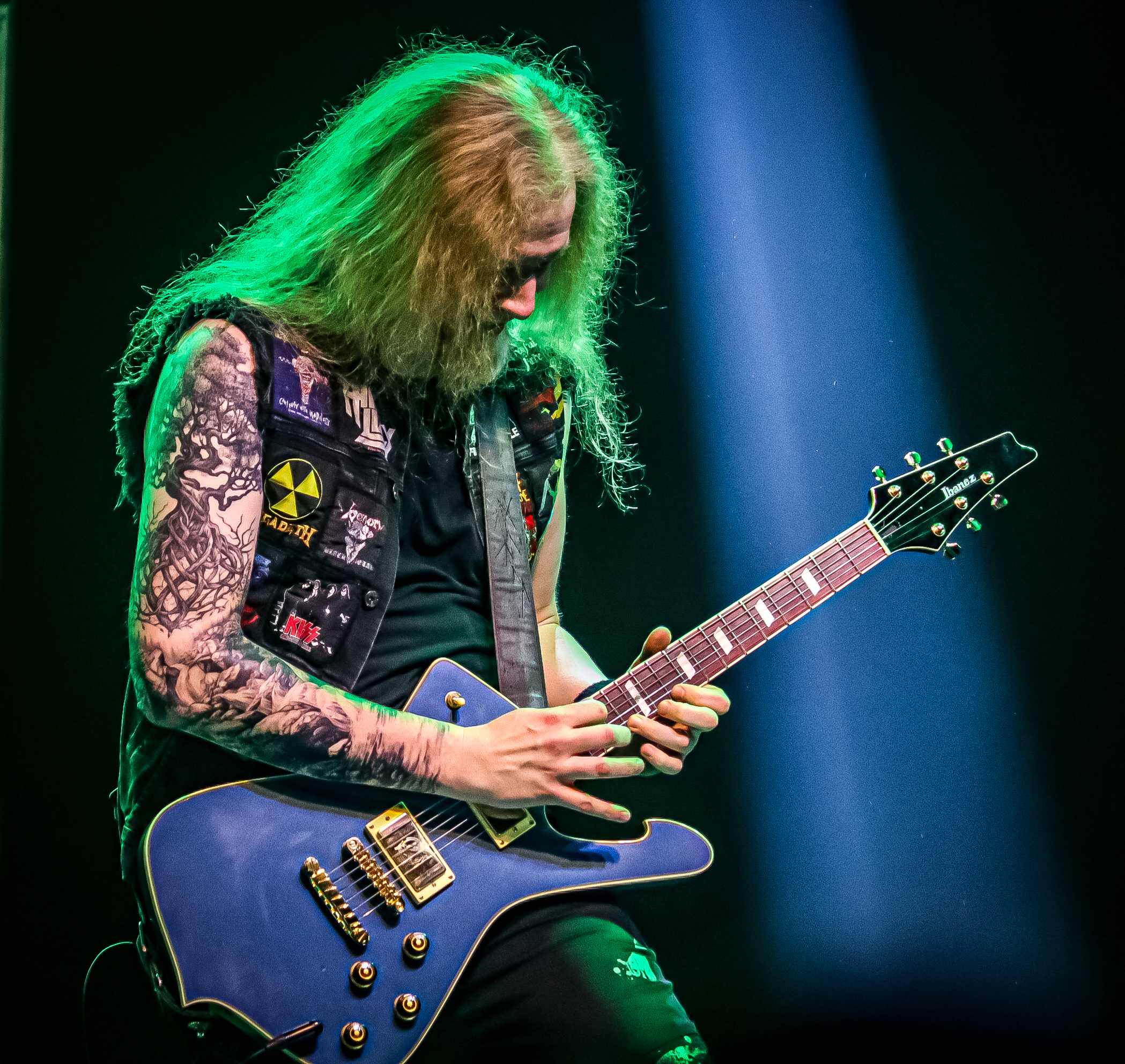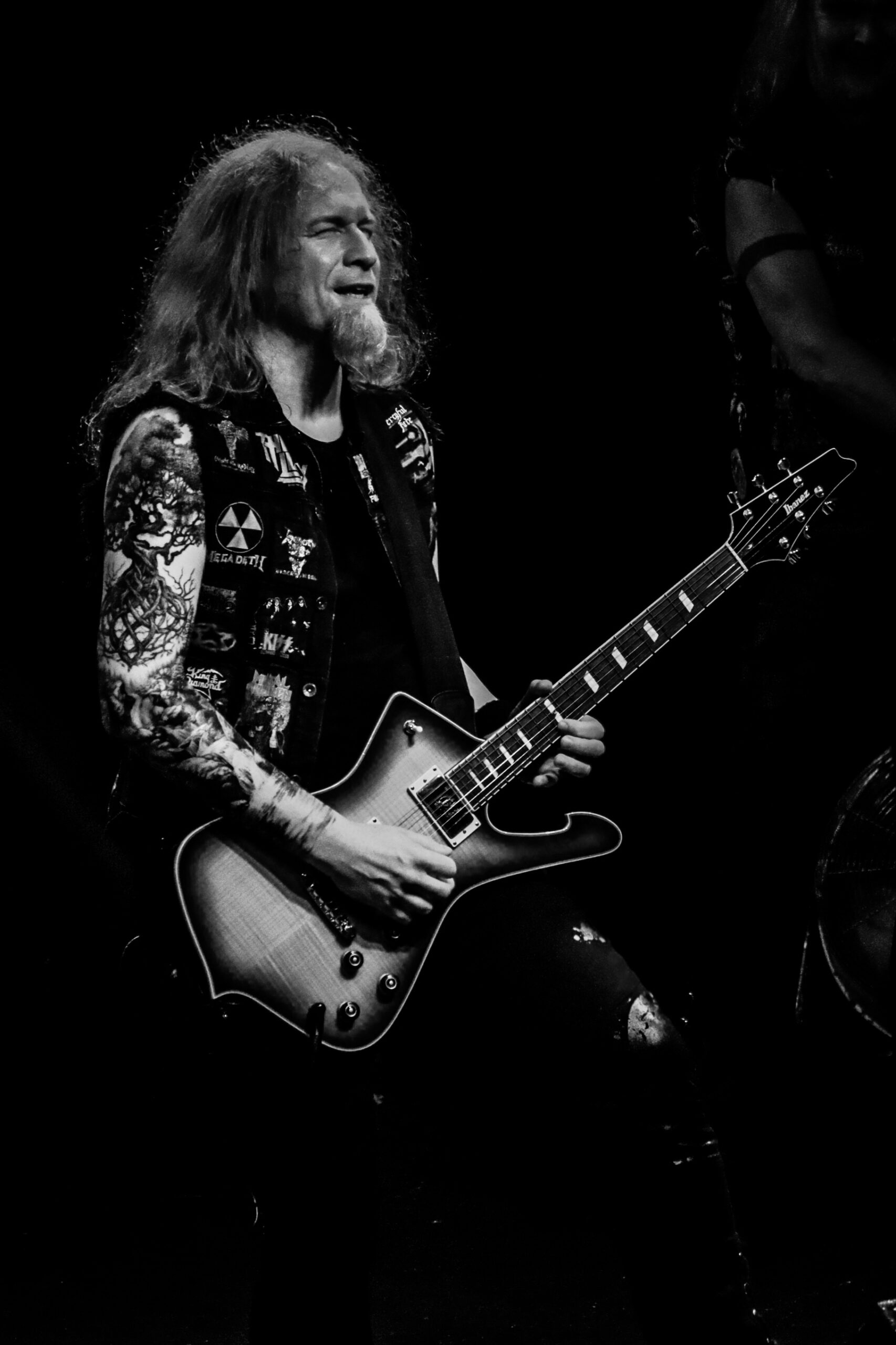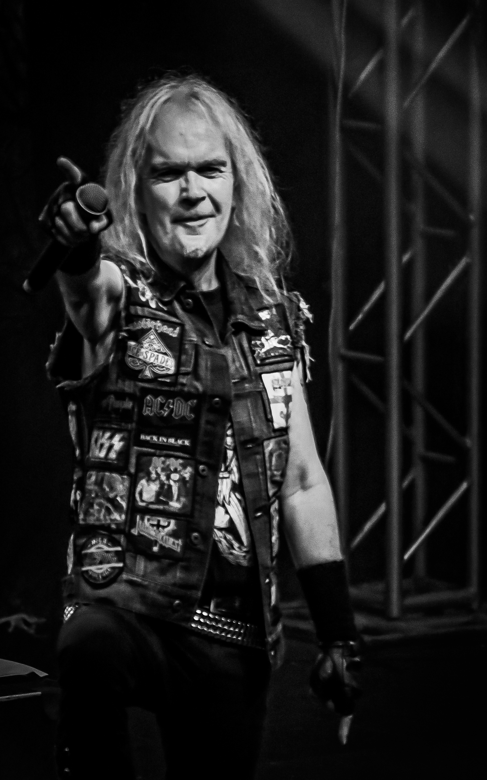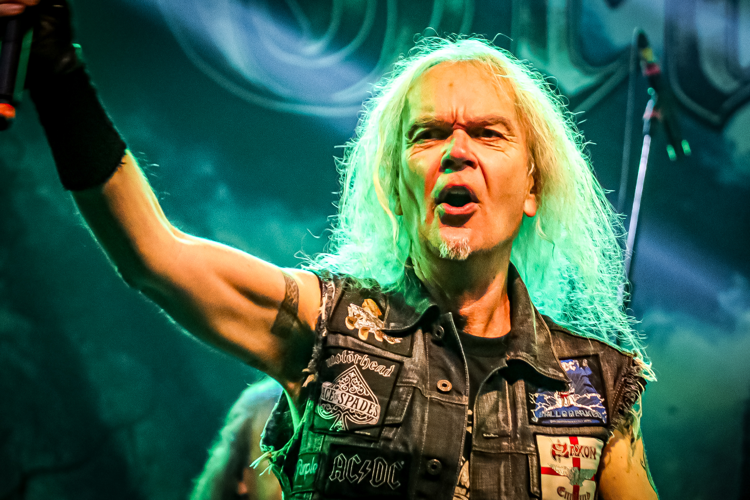 Os suecos do Ambush subiram ao palco às 20:30 e uma agradável surpresa foi a melhora no som, mais nítido em relação a banda anterior. A abertura com “Firestorm” e “Possessed by Evil”, deixou explícita a qualidade técnica e presença de palco da banda. Contudo, na música seguinte, um problema nas luzes do palco o deixou às escuras até às 21:03, comprometendo a visibilidade por praticamente metade do show. Felizmente, os integrantes não pareceram se abalar pelos problemas técnicos e se a luz faltou, a energia e o som contagiante reverberando no Tork mais que suficientes para manter a energia do público em alta. As interações do vocalista Oskar Jacobsson em português foram um destaque à parte e superaram demais o protocolar “obrigado”. Ele brincou com o público, mencionou a cachaça 51 e até soltou um inesperado “Paraná do meu coração”, arrancando risadas e aplausos. Para quem viu os vídeos de divulgação da turnê gravados em português, cujo de Curitiba continha até uma referência ao Oil Man, essa desenvoltura não foi exatamente uma surpresa, mas funcionou ainda melhor ao vivo. Durante a execução de “Come Angel of Night” a luz do palco finalmente voltou, arrancando gritos de comemoração do público, que mesmo durante o “apagão” se manteve empolgado e agitado. O setlist da noite naturalmente foi focado no novo álbum da banda, Evil in All Dimensions, lançado este ano e como sua última representante tivemos a potente “Bending the Steel”. Após um solo do guitarrista Karl Dotzek, o encerramento veio com a dupla poderosa “Natural Born Killers” e “Don’t Shoot (Let ‘em Burn)”, de seu disco de estreia, Firestorm, finalizando o show com a energia do mais puro aço em alta.