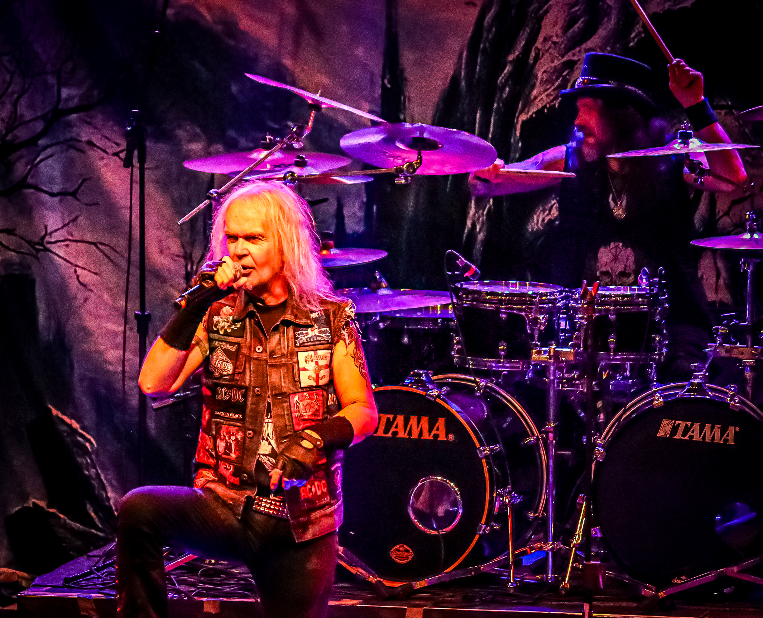 Pontualmente às 19:30 o quarteto da Hellway Train subiu ao palco e abriu a noite com um show curto, de apenas meia hora de duração, mas suficiente para empolgar quem da plateia já os conhecia e instigar os desavisados à conhecê-los. Com um som fortemente influenciado pelo heavy metal oitentista e bandas lendárias como Judas Priest, a banda se destaca ao vivo não só pela qualidade de suas composições, mas pela performance ao vivo. Com músicos muito talentosos e um trabalho que se destaca no cenário nacional apontando-os como um dos nomes mais proeminentes do heavy metal nacional, feito alavancado com o lançamento de seu último álbum, Borderline. Durante todo o show, a presença de palco da banda foi um ponto muito marcante, desde a escolha estética às interações tanto entre os músicos quanto com o público. Ainda assim, é impossível não destacar Marc Brito. Seu vocal poderoso chama atenção desde o primeiro segundo, mas ele vai muito além e não economizou palavras nas declarações anticristãs, antirracistas e antifascistas, deixando claro que o único culto celebrado ali era ao heavy metal. Um show curto, mas impactante, que deixou o público não apenas aquecido para o restante da noite, como também envolvido pela performance marcante.